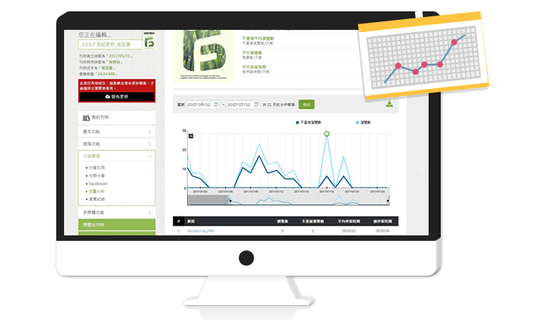 更棒的是,您可以透過平台功能將刊物內容分享至全世界,擁有350個以上的社群平台。