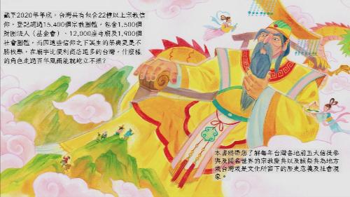 截至2020年年底,台灣共有包含22種以上宗教信仰,登記超過15,400個宗教團體,包含1,500個財團法人(基金會)、12,000座寺廟及1,900個社會團體,而因這些信仰之下誕生的祭典更是不勝枚舉,在廟宇比便利商店還多的台灣,什麼樣的角色走過百年風雨能就屹立不搖?
