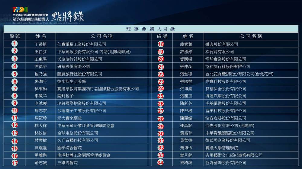 台北內湖科技園區發展協會第七屆理監事候選人選舉電子書
