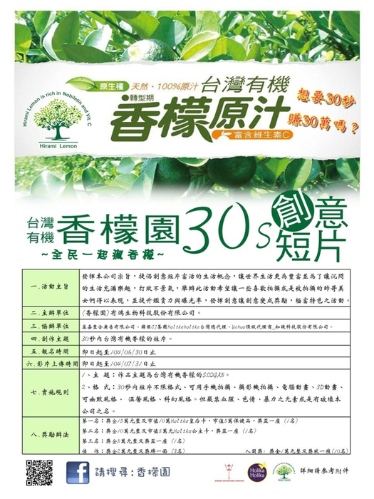 「台灣有機香檬園」30秒短片比賽實施辦法