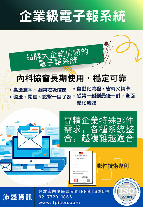 內科園區2026.03.04電子報:沛盛資訊|專利認可企業專屬 高效能電子郵件行銷技術