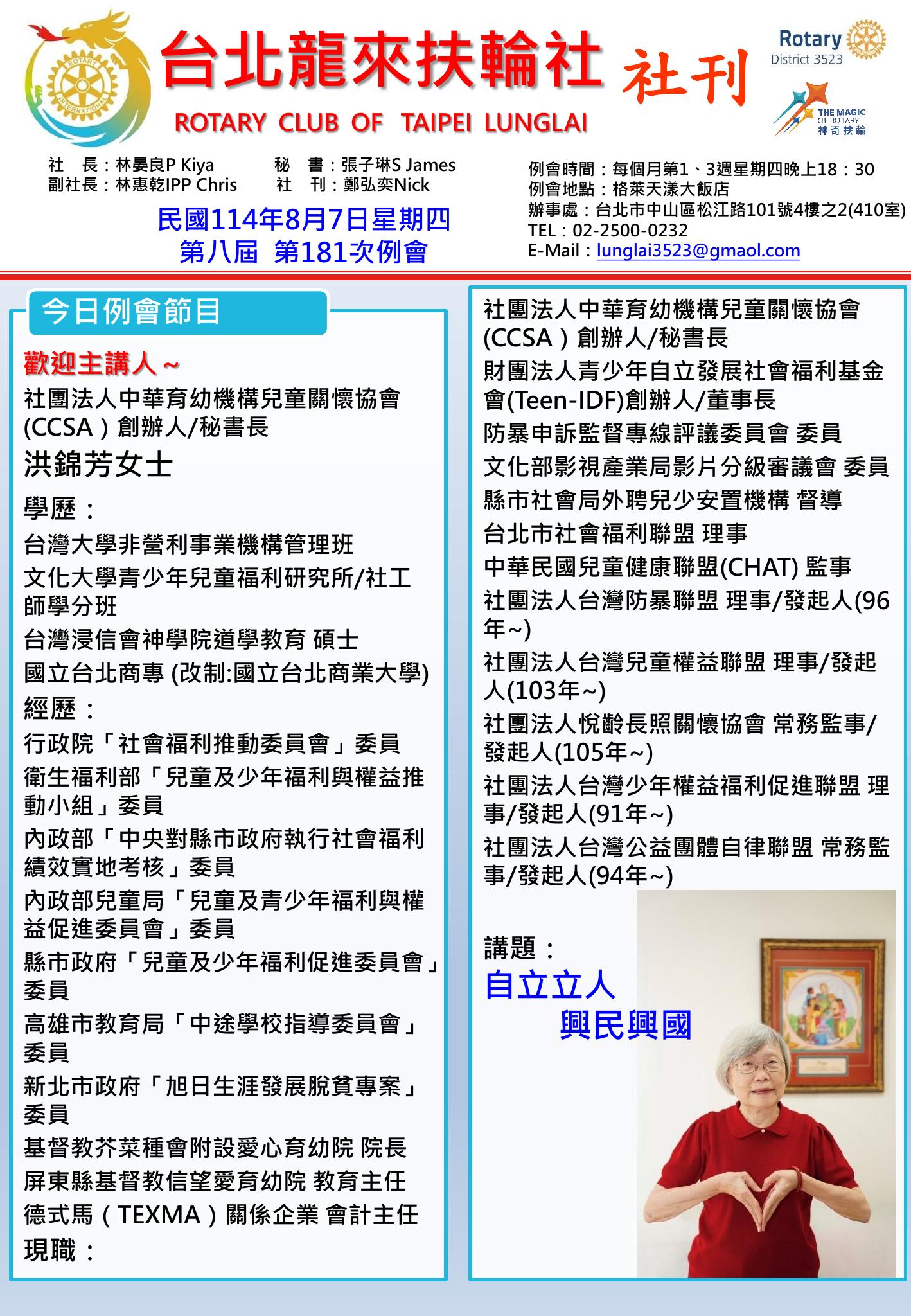 社團法人台北龍來扶輪社 第179次例會 線上社刊