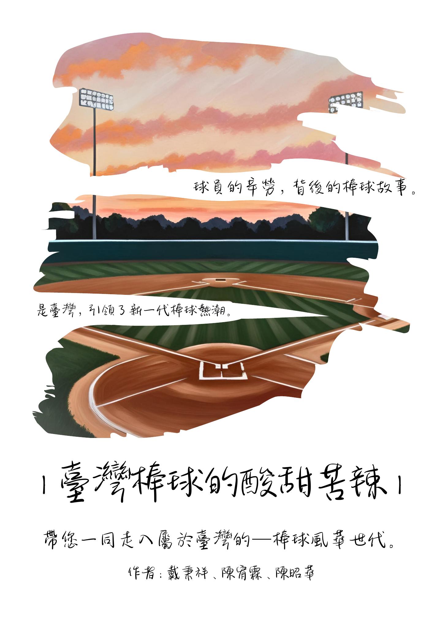 本作品(臺灣棒球的酸甜苦辣)截至目前進度,以「酸」、「甜」、「苦」、「辣」四大層面進行資料蒐集,分別為「棒球賽事上的酸民觀眾」、「臺灣棒球在國際賽場上的絕佳表現成果」、「臺灣棒球曾經經歷的假球案」以及「臺灣掀起獨特的啦啦隊應援熱潮」。