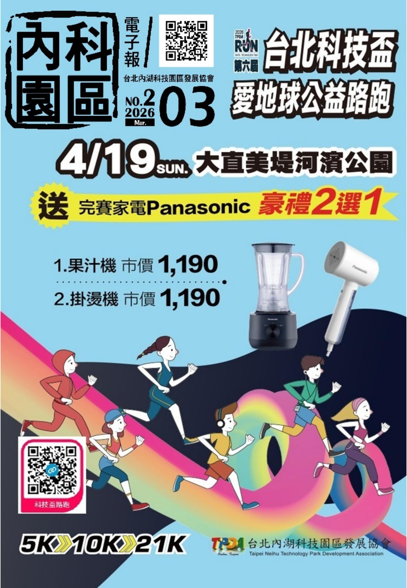 內科園區2026.03.11電子報:錯過再等一年!4/19台北科技盃公益路跑 3/22報名截止!最後倒數中!