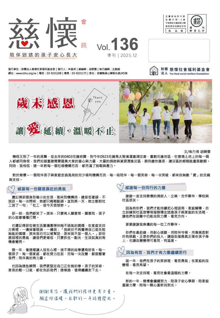 邀請您與慈懷一起為孩子創造新的人生奇蹟,溫暖每個受傷心靈。